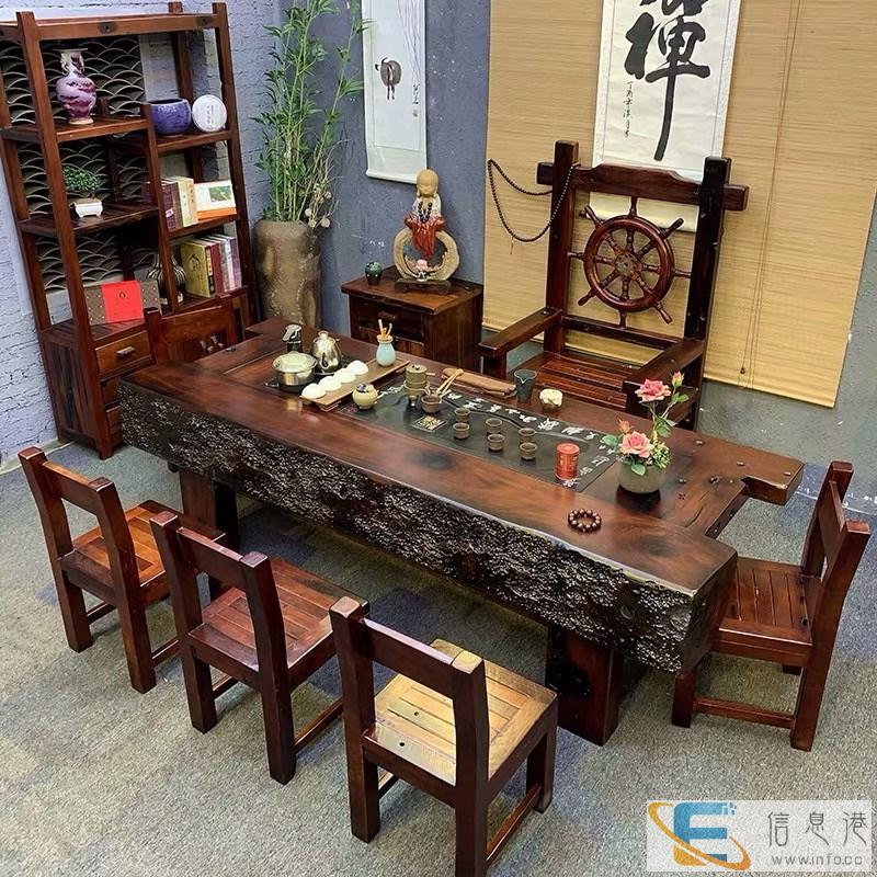 绍兴市老船木茶桌椅子仿古茶台实木沙发茶几餐桌办公桌家具博古架