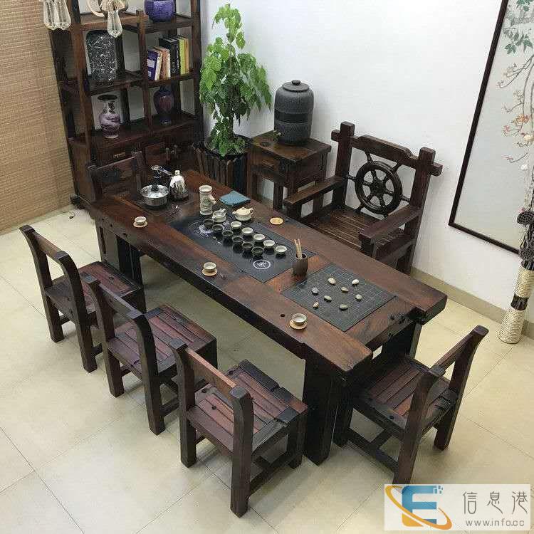 老船木家具船木茶桌茶几户外家具餐桌茶几博古架组合